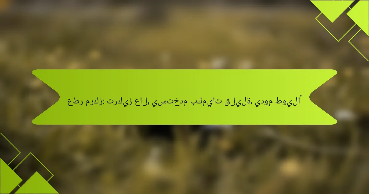 العطر المركز يتميز بتركيز عالٍ من الزيوت العطرية، مما يجعله يدوم لفترة طويلة ويحتاج إلى كميات قليلة عند الاستخدام. يعتبر خيارًا مثاليًا لمن يبحثون عن تجربة عطرية مميزة وفعالة، حيث يمكن استخدامه بكميات قليلة على نقاط محددة من الجسم لتحقيق أقصى استفادة من تركيزه العالي.